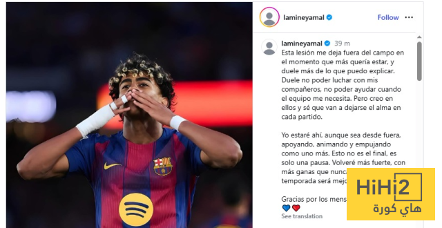 واختتم يامال رسالته بنبرة إيجابية، مؤكداً أن هذه الفترة مجرد توقف مؤقت، وأنه سيعود أقوى في الموسم المقبل لمواصلة مسيرته مع الفريق الكتالوني.