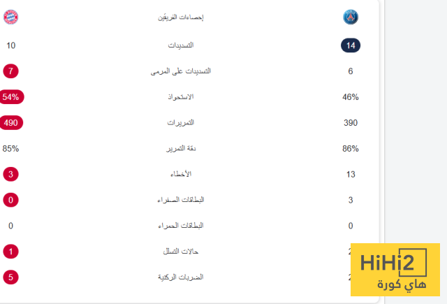 احصائيات مباراة باريس و البايرن في دوري الابطال