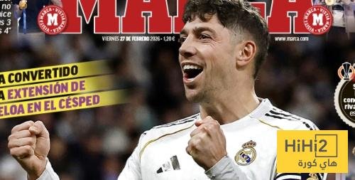 هاي كورة- تصدر فيديريكو فالفيردي لاعب ريال مدريد غلاف صحيفة ماركا الاسبانية اليوم الجمعة 27 فبراير 2026 .