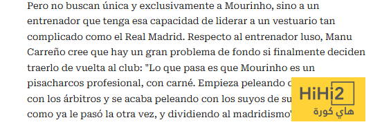 ” المشكلة تكمن في ان مورينيو مثير للمشاكل بالفطرة ، يبدأ بالشجار مع برشلونة والحكام ، وينتهي به الأمر بالشجار مع لاعبيه ، كما حدث في المرة السابقة مما أدى الى انقسام جماهير ريال مدريد بين مؤيد ومعارض لعودته “