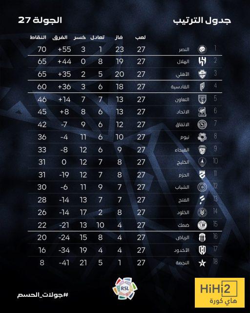 الاتحاد بـ 45 نقطة من أصل 81 ، سجل 42 هدفًا واستقبلت شباكه 34 أخرين .