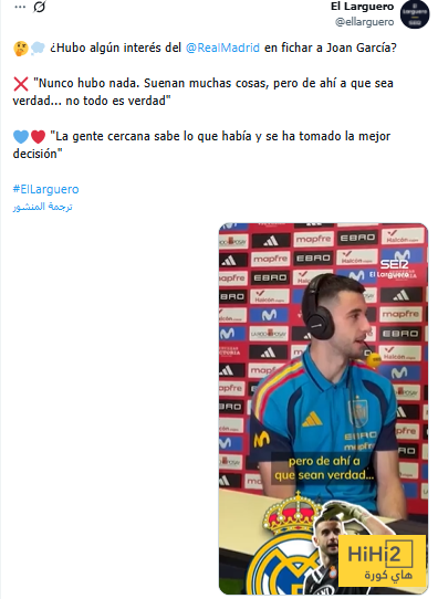 كشف خوان غارسيا حقيقة الأنباء الأخيرة والتي أشارت إلى رغبة نادي ريال مدريد في التعاقد معه .
