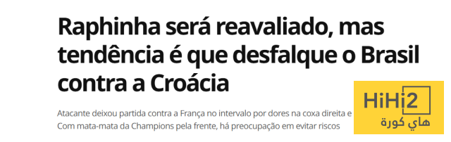 حسب صحيفة Gelobo البرازيلية ، كان رافينيا يتلقى العلاج قبل مباراة البرازيل وفرنسا في بوسطن أمس الخميس ، ورغم ذلك دفع المدرب كارلو أنشيلوتي به اساسيا ضد الديوك .