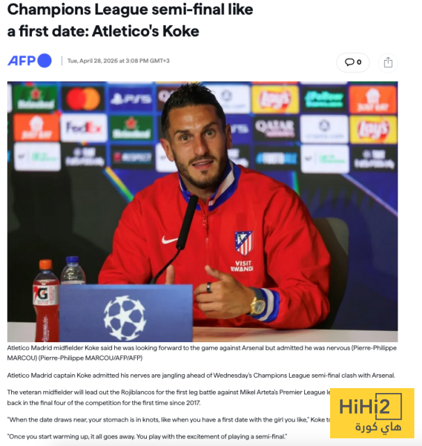 قال، لاعب أتلتيكو مدريد، خلال المؤتمر الصحفي الخاص بمواجهة أرسنال في نصف نهائي دوري أبطال أوروبا، إنه يشعر بتوتر وألم في المعدة كلما اقترب موعد نصف النهائي أمام أرسنال، لكنه أوضح أنه يهدأ تمامًا بمجرد بدء اللقاء.