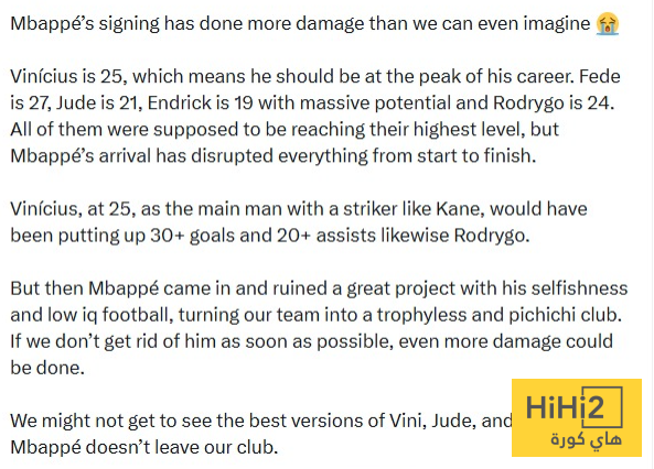 لكن مبابي جاء وأفسد مشروعًا قويًا بسبب أنانيته وضعف قراراته داخل الملعب، مما حول الفريق إلى نادٍ يركز على الأرقام الفردية أكثر من البطولات، وإذا لم يتم التعامل مع هذا الوضع سريعًا، فقد يحدث ضرر أكبر.
